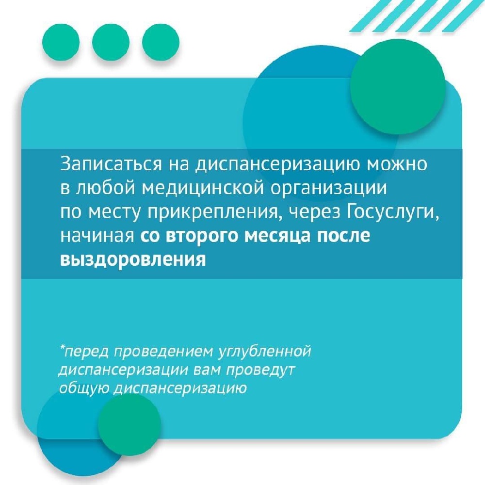 с 1 июля 2021 года переболевшие COVID-19 граждане могут пройти расширенное медицинское обследование. Минздрав России утвердил Порядок направления граждан для прохождения углублённой диспансеризации, которая будет проводиться в первоочередном порядке для россиян, переболевших коронавирусом и имеющих хронические неинфекционные заболевания из утверждённого списка (приказ Министерства здравоохранения Российской Федерации от 01.07.2021 N°698н «Об утверждении Порядка направления граждан на прохождение углублённой диспансеризации, включая категории граждан, проходящих углублённую диспансеризацию в первоочередном порядке»).