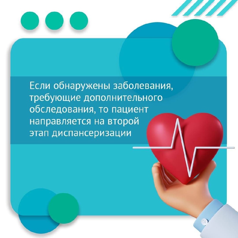 Все эти обследования можно будет пройти за один день. По их результатам врачи определят риски и признаки развития хронических заболеваний и при необходимости, для уточнения диагноза, направят пациента на второй этап. Он будет включать ещё три обследования — эхокардиографию, КТ лёгких и допплеровское исследование сосудов нижних конечностей. Если по результатам диспансеризации у пациента выявят хронические заболевания или риски их возникновения, то ему будет оказано необходимое лечение и назначена медицинская реабилитация.