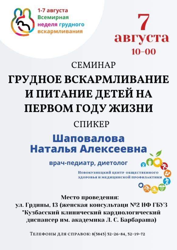 7.08.2023 в 10.00 состоится семинар "Грудное вскармливание и питание детей на первом году жизни"