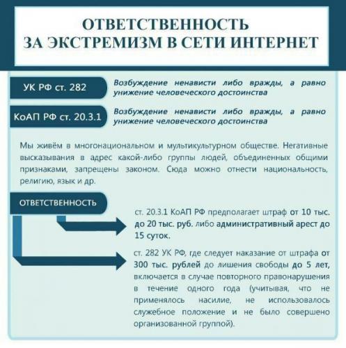 -Пропагандирует исключительность, превосходство или неполноценность человека по признаку его социальной, расовой, национальной или религиозной или языковой принадлежности