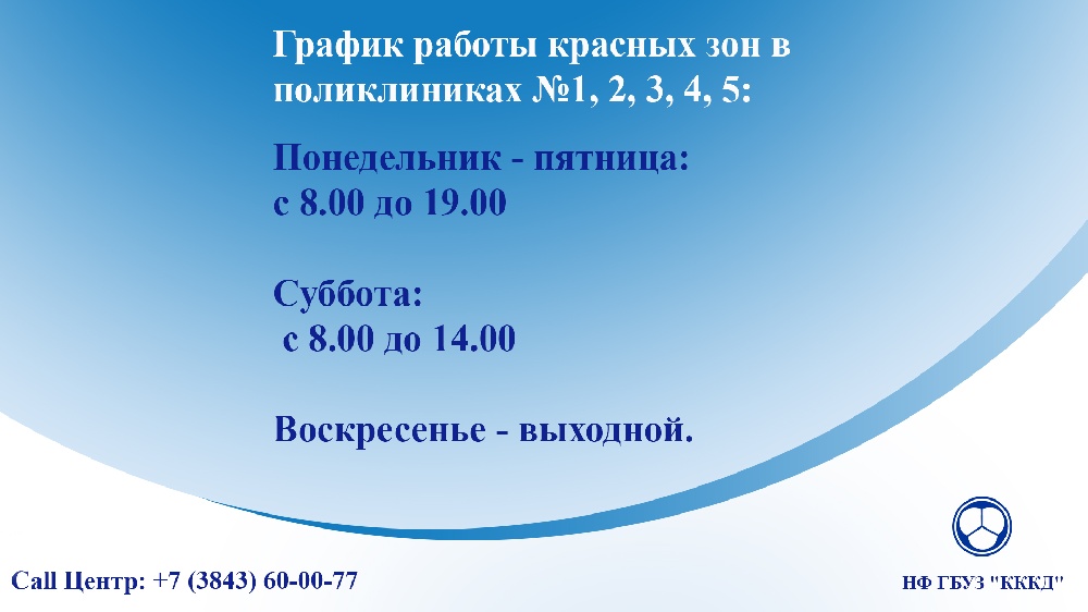 График работы красных зон в поликлиниках №1, 2, 3, 4, 5: