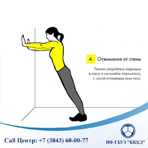 4 «Отжимание от стены» - нагрузка на мышцы спины и живота разогреет их и подготовит ваше тело к силовым нагрузкам.