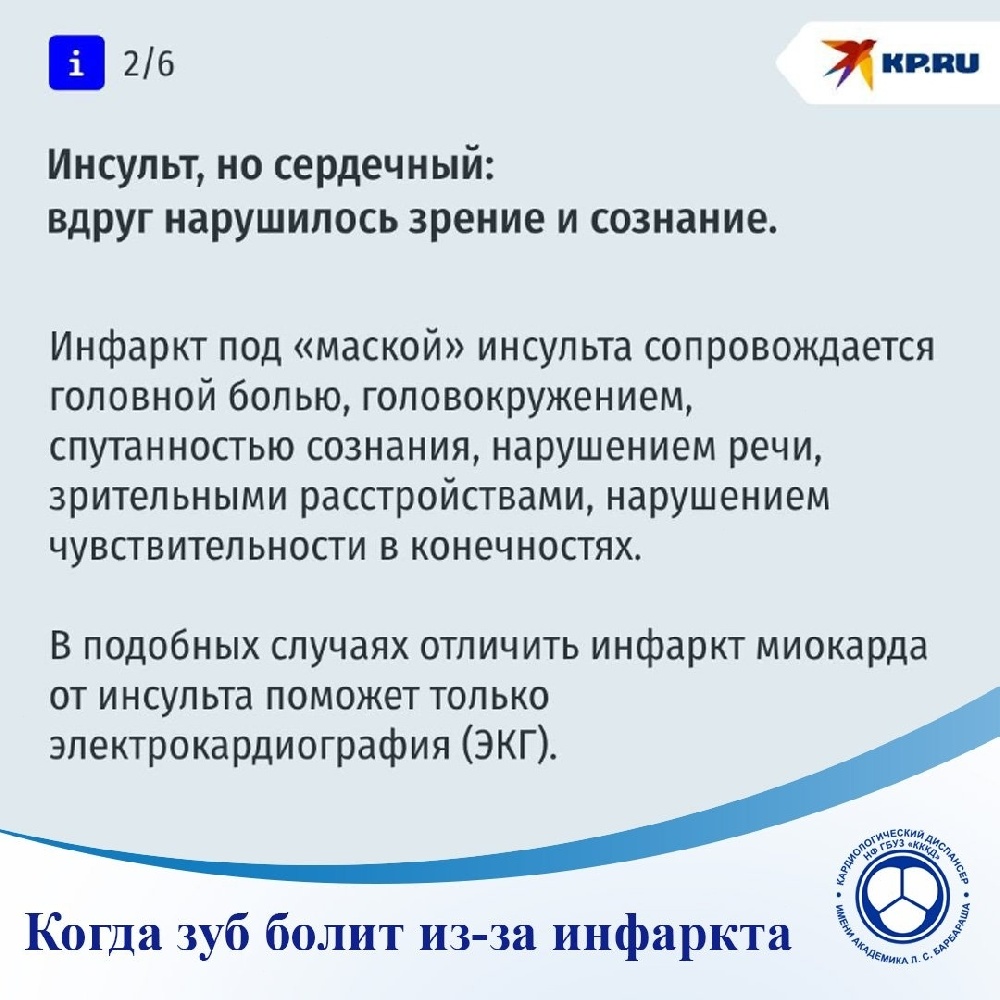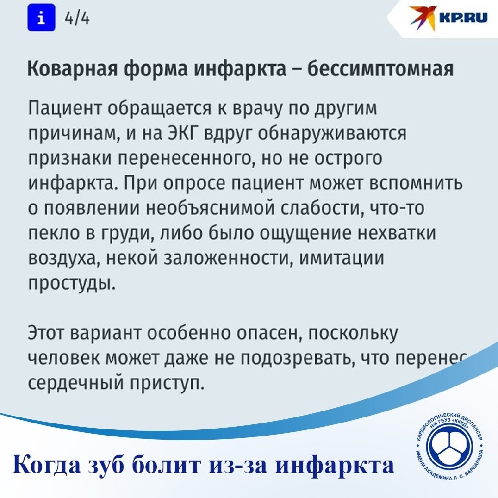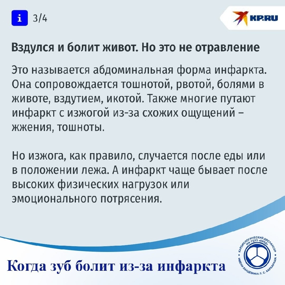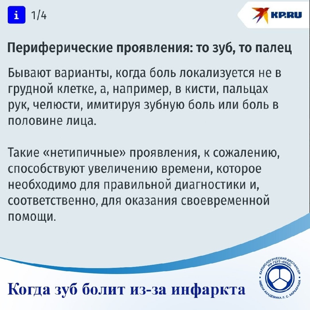 Когда зуб болит из-за инфаркта: три неожиданных симптома сердечного приступа: www.kp.ru/daily/2765...