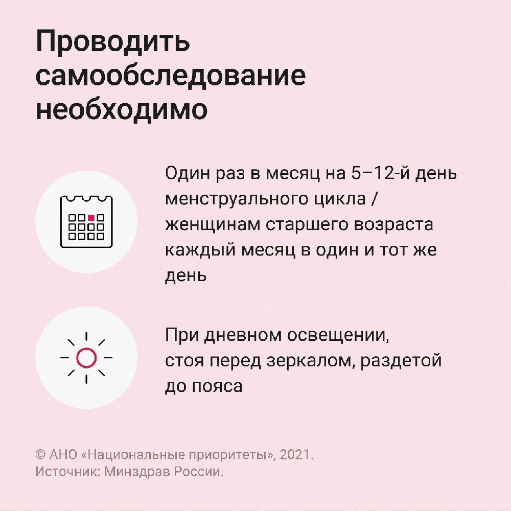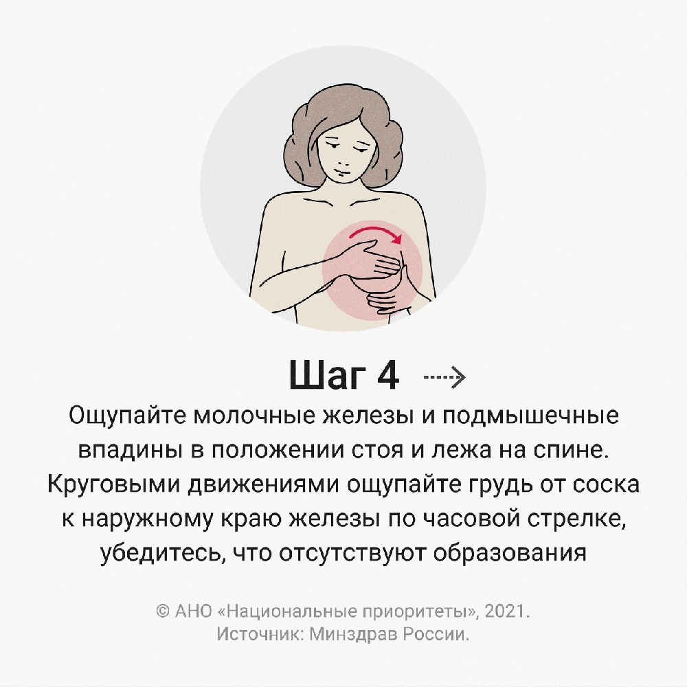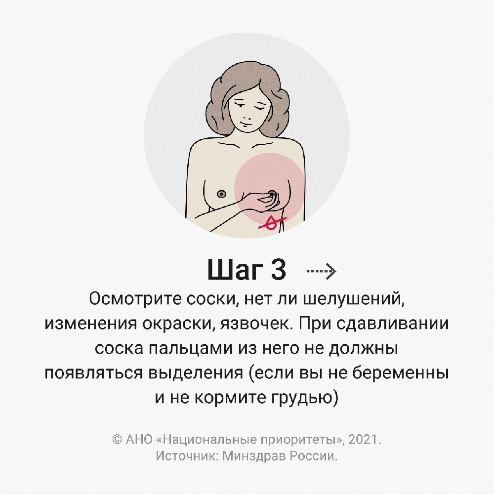 Что делать? Самообследование: Раз в месяц после окончания менструций. Знать свою норму — значит вовремя заметить изменения.
