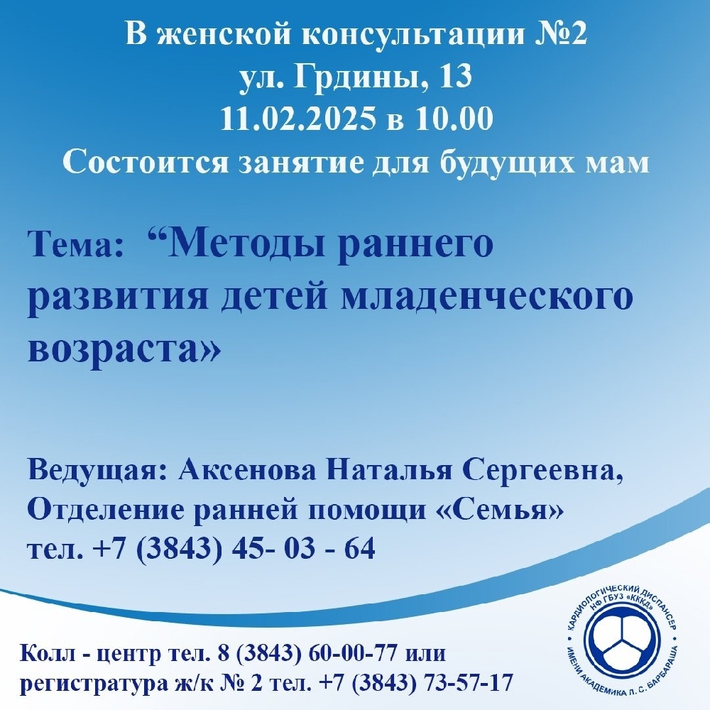 Узнать даты и записаться на предстоящие семинары для беременных можно, позвонив в колл-центр Новокузнецкого филиала Кузбасского кардиодиспансера   тел. 8 (3843) 60-00-77
