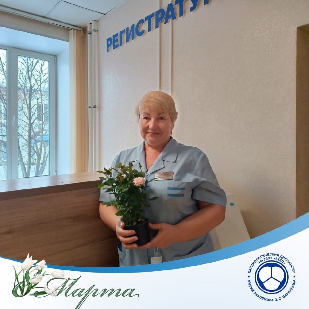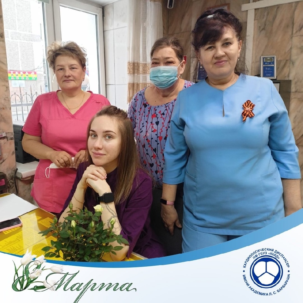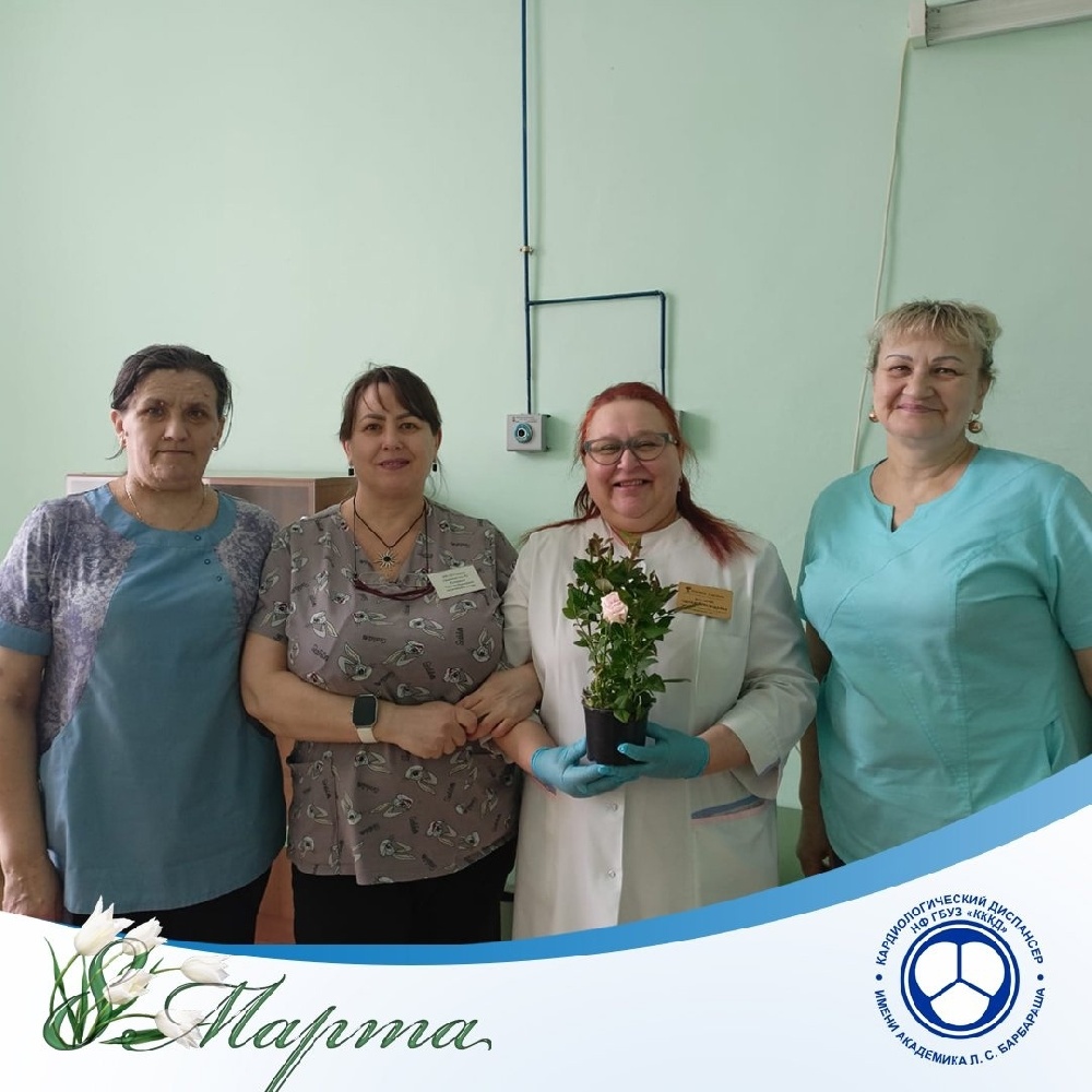 Главный врач Новокузнецкого филиала кардиодиспансера Александра Анатольевна Гальчин поздравила  лично сотрудников на рабочих местах в праздничный день 8 марта.