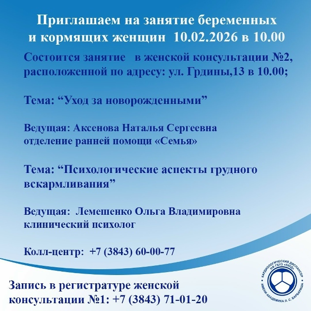 Приглашаем на занятие беременных и кормящих женщин завтра 10.02.2026
