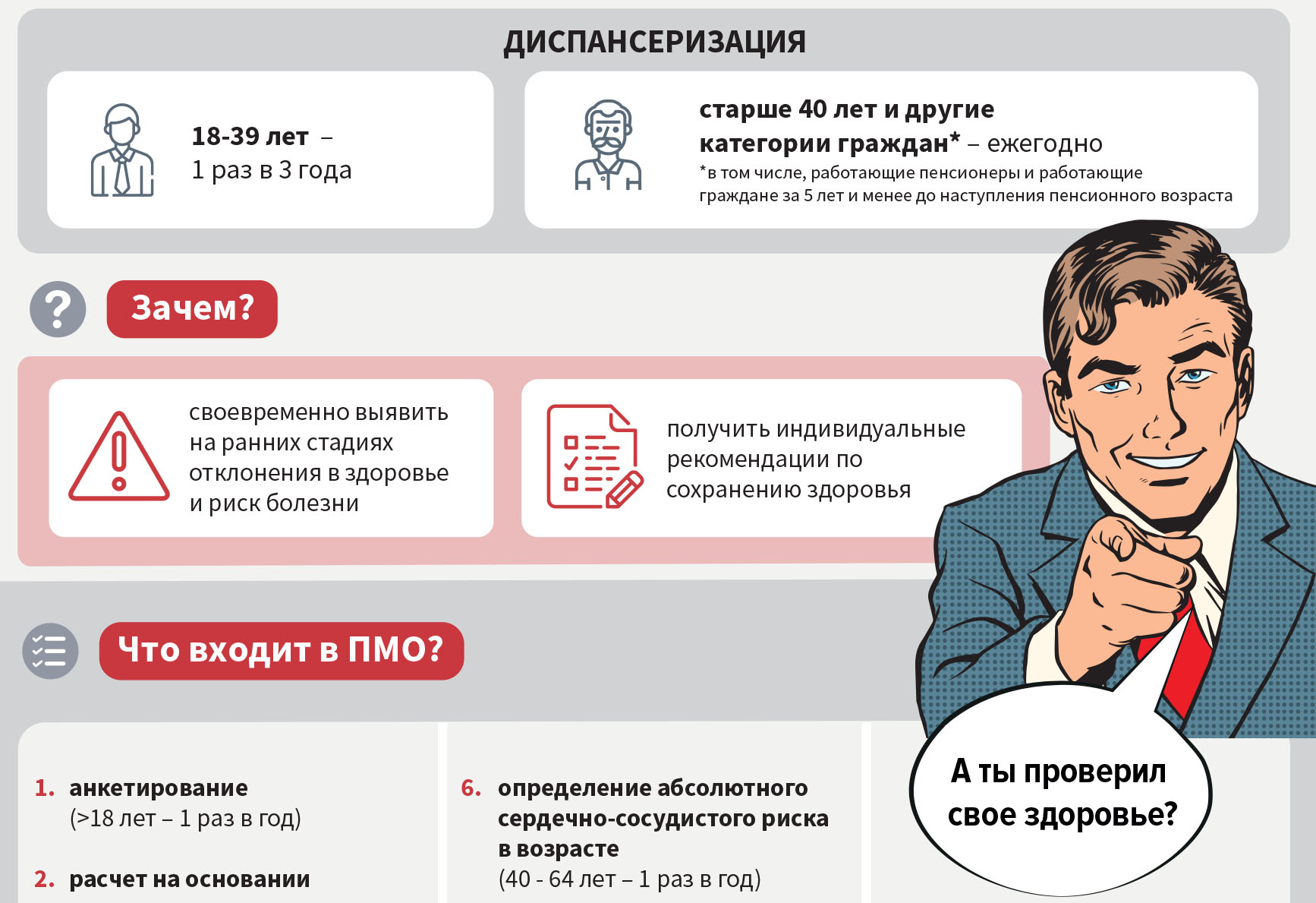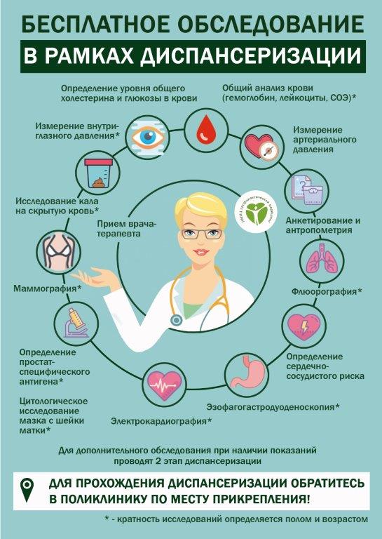 Диспансеризация или профилактический медицинский осмотр проводятся ежегодно с 18 лет
