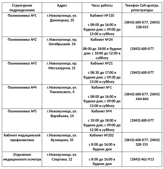 Записаться на профилактические мероприятия можно обратившись в единый колл-центр (3843) 600-077, регистратуру структурного подразделения, а так же самостоятельно записаться через портал "Госуслуги" или сервис «Врач42».
